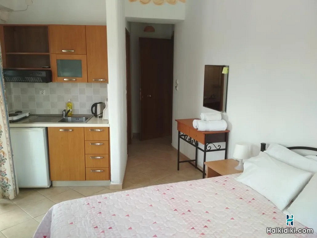 Вила Пасхалиа 1 е идеален избор доколку барате сместување во центарот на Геракини и на 100м од песочната плажа. Располага со 1/2, 1/3 и 1/4 студија, сите сместени на првиот кат. Опремени се со клима (вклучена во цената) мини кујна, опремена според бројот на кревети, тераса опремена со маса, столици и тенда, комарници, WI-FI.