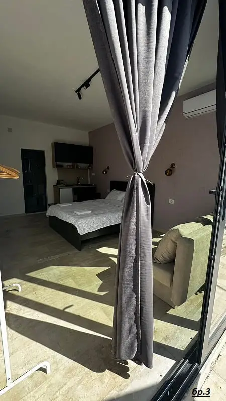 бр.2 1/2+2 студио со еден двоен кревет и една софа на отварање 140cm (капацитет за 2 возрасни + 2 деца или 3 возрасни + 1дете)