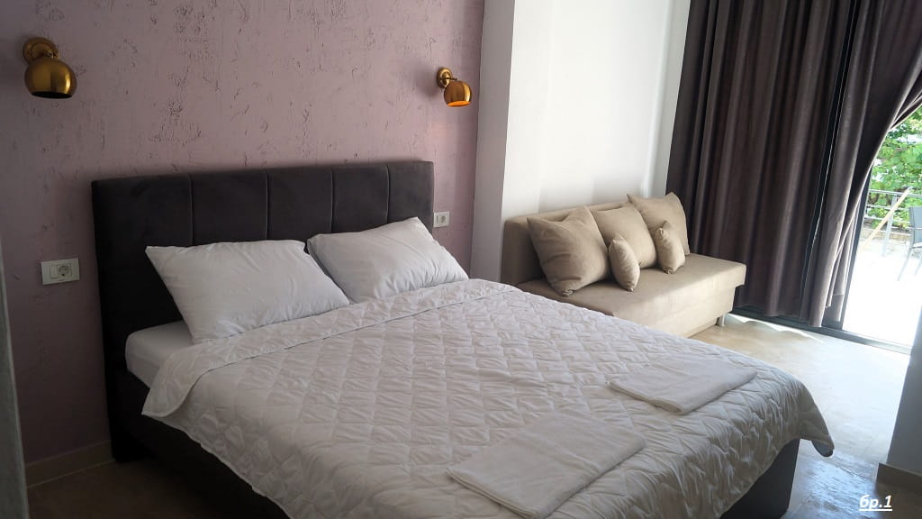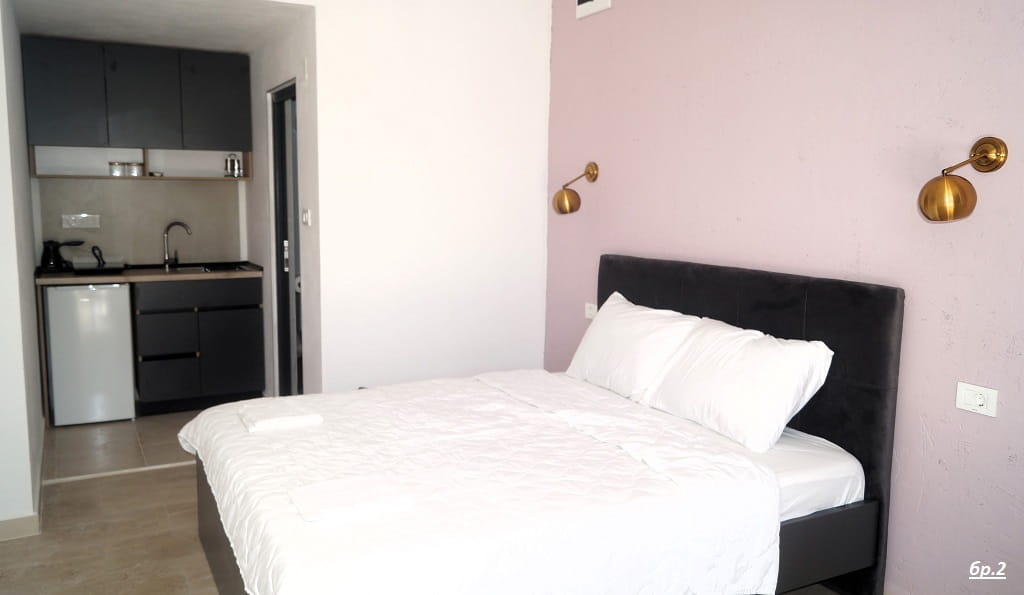 бр.1 1/2+2 студио со еден двоен кревет и една софа на отварање 140cm (капацитет за 2 возрасни + 2 деца или 3 возрасни + 1дете)